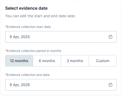 * Select an **evidence collection start date** using the calendar picker.