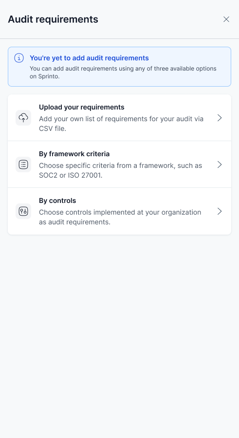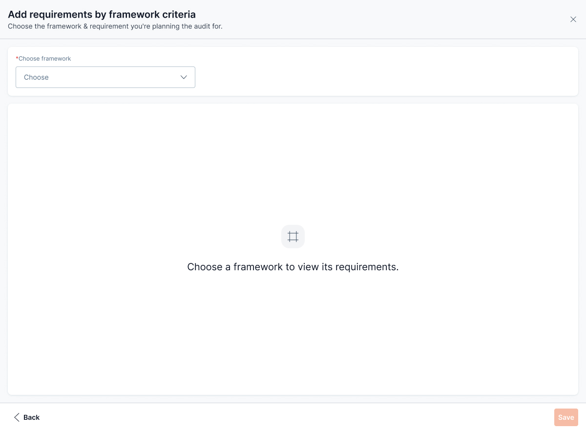 Use this method to select specific requirements from a compliance framework (for example, SOC 2 or ISO 27001).