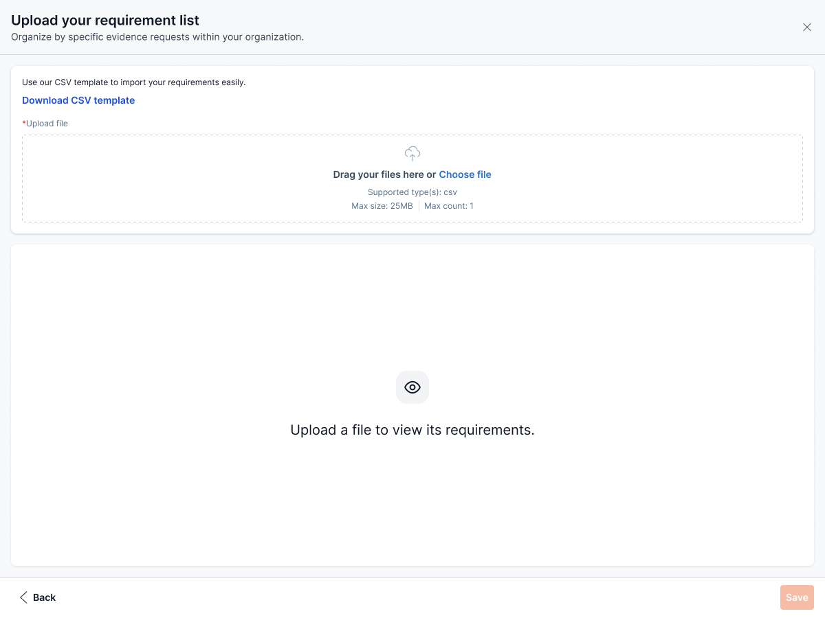 Use this method to upload your own list of audit requirements using a CSV file.