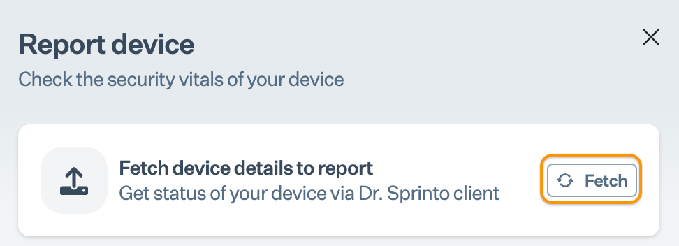* Data Transmission: Dr. Sprinto sends device information to Sprinto servers only when you explicitly request it. This occurs when you click "Fetch Device Status" in the Sprinto app or "Record Device Status" in Dr. Sprinto.