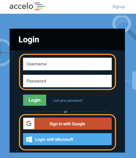 Log in to your Accelo account using your credentials or available Single Sign-On (SSO) options.