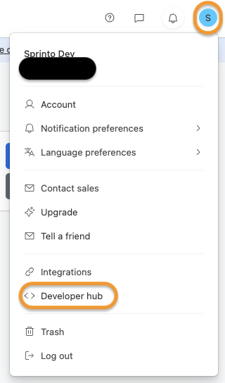 Click on the profile icon at top, and select Developer Hub.