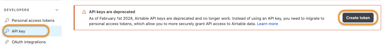 Get the API key from Airtable account.