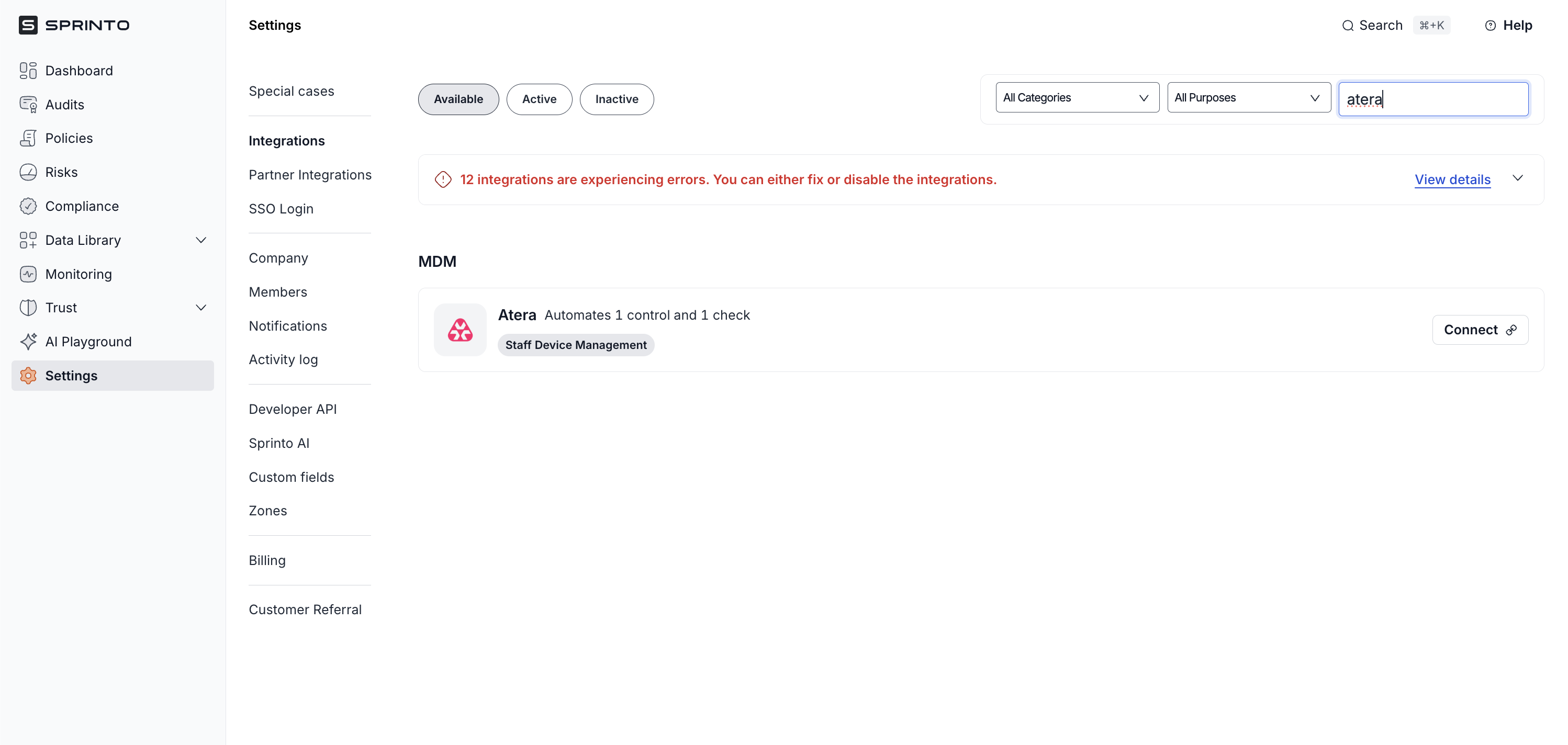 ### Integrate Sprinto with Atera <a href="#integrate-sprinto-with-atera" id="integrate-sprinto-with-atera"></a>