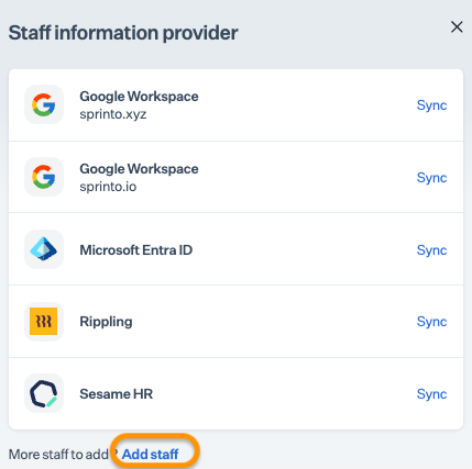 * On the Add staff member page, select Add staff from HRMS, then click the details button next to BambooHR.
