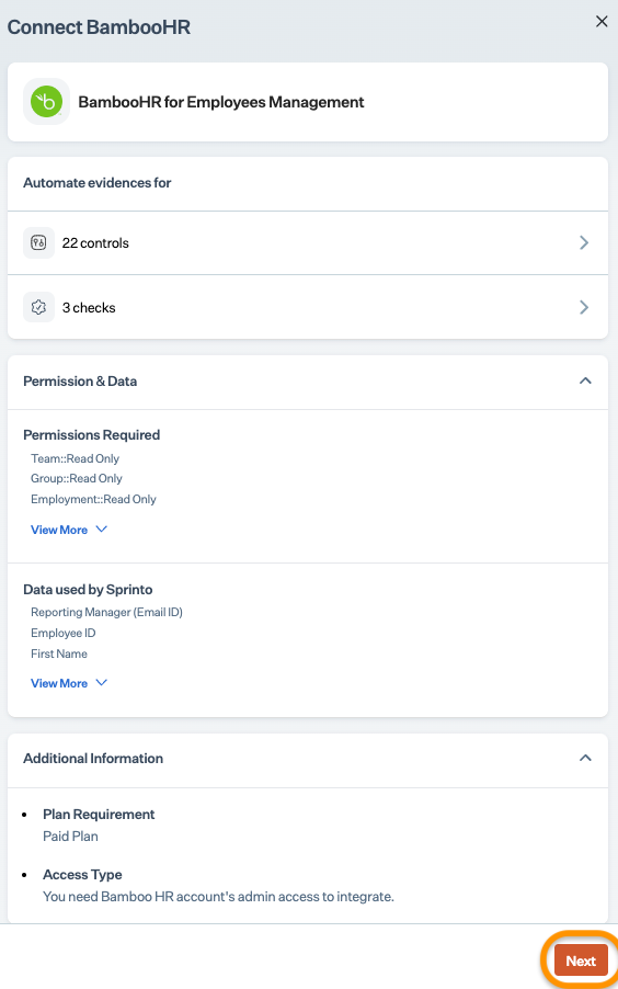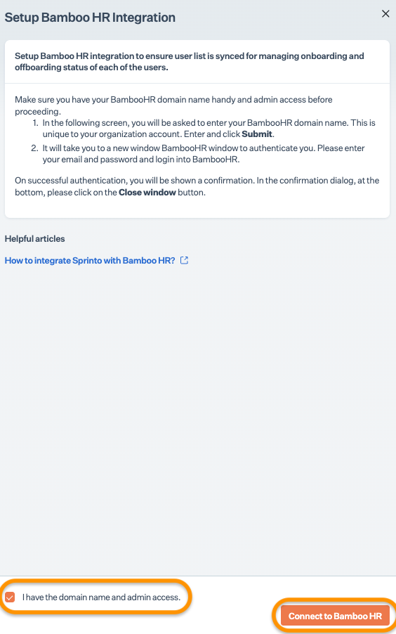 2. Integrate BambooHR with Sprinto.