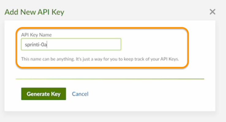 * Enter a name for the API Key, and click Generate Key.