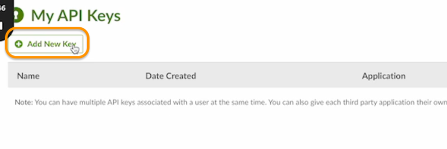 * On the My API Keys page, click Add New Key to generate a new API key.