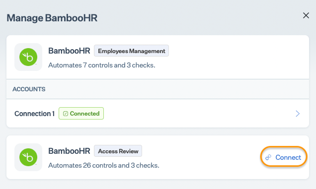 * Click Connect next to BambooHR for Access Review.
