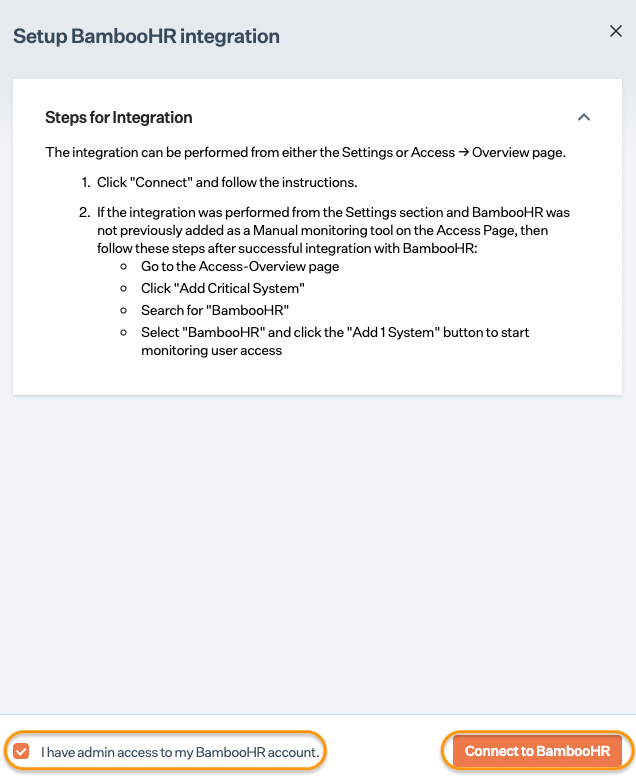 * From the [Access Overview](https://app.sprinto.com/app/admin/accessControl/overview) page, select BambooHR from the critical systems list.