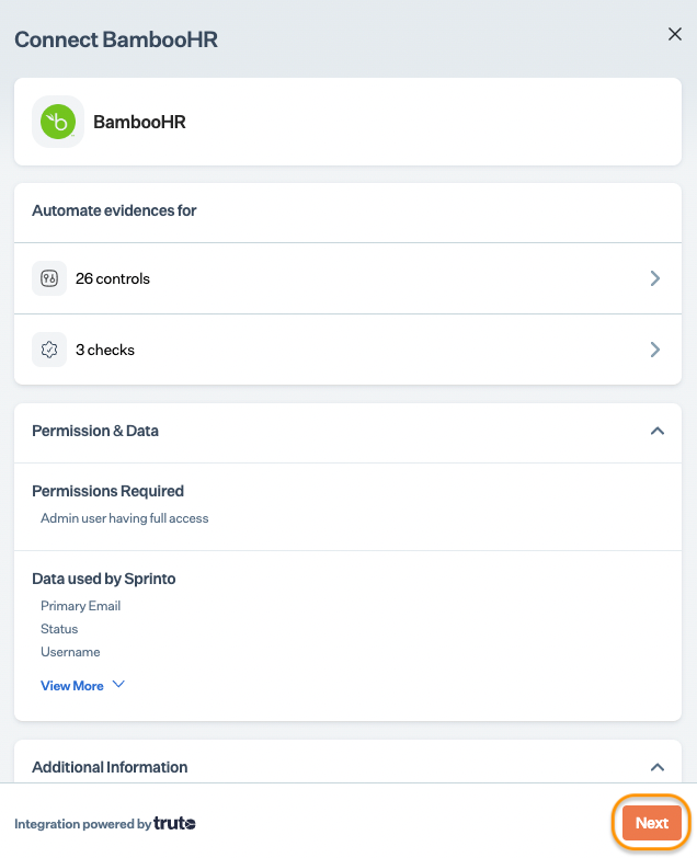 Note: [Truto](https://www.truto.one/) is our integration partner for BambooHR for user access monitoring. Sprinto utilizes Truto's API capabilities for data inflow.