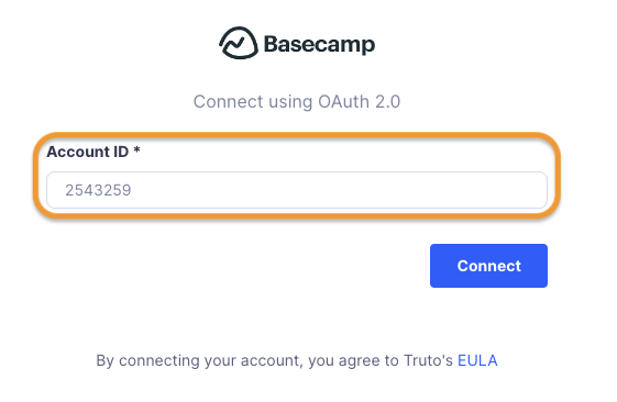 Enter the Basecamp Account ID you copied from Step 1, and click Connect.