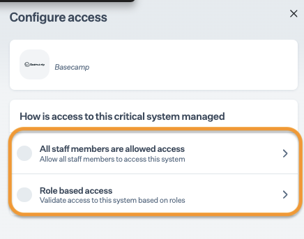 Go to Data Library > Access > Critical systems, and select Basecamp.