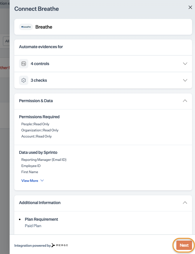 * Ensure you have a paid account on Breathe to build integration with Sprinto.