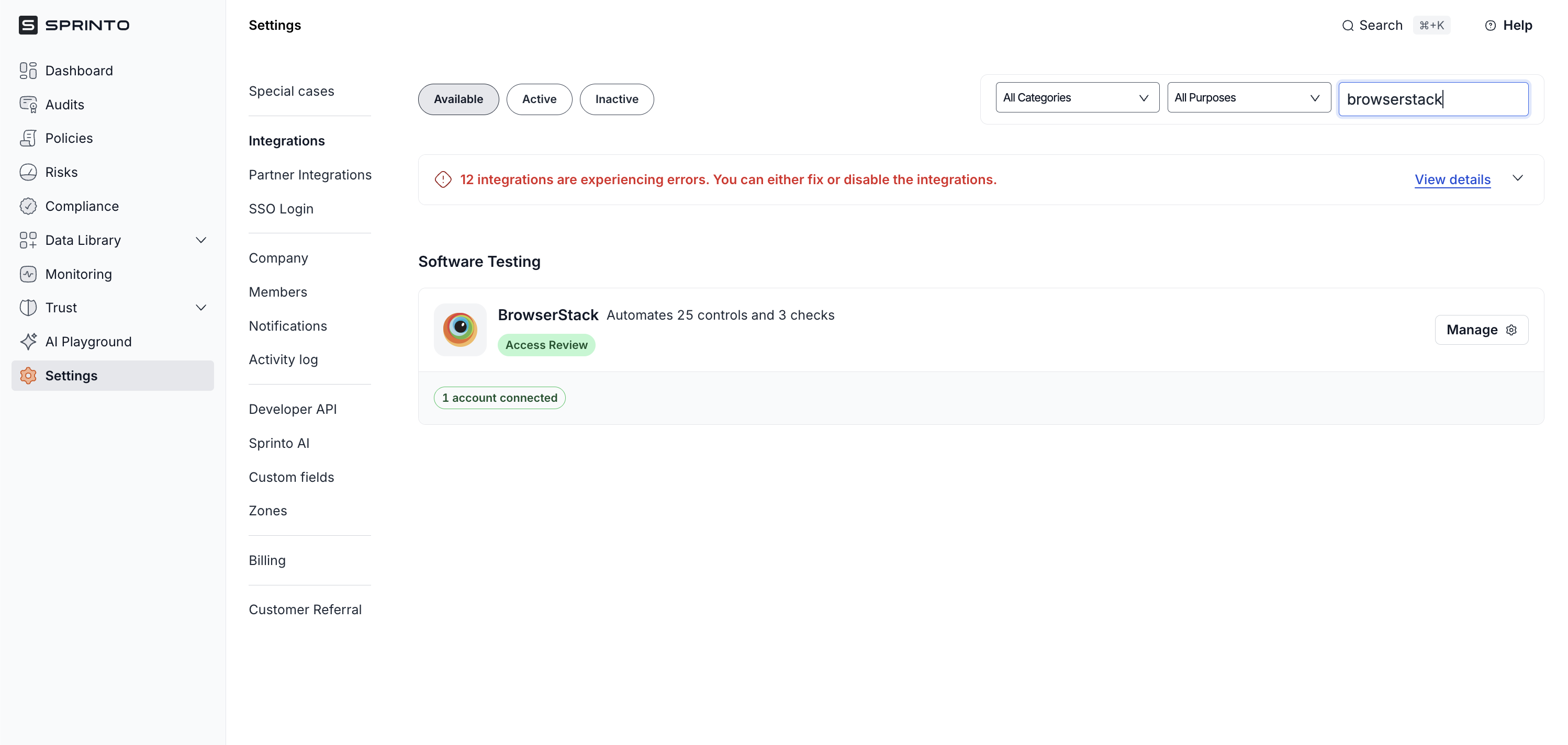 Integrating Sprinto with BrowserStack