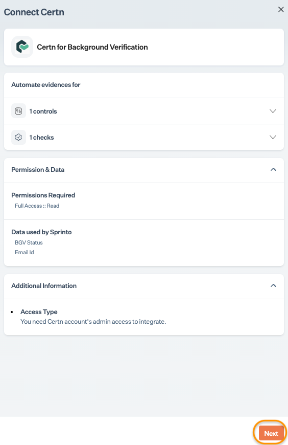 Ensure you have “Admin” access on the Certn account you wish to integrate on Sprinto.