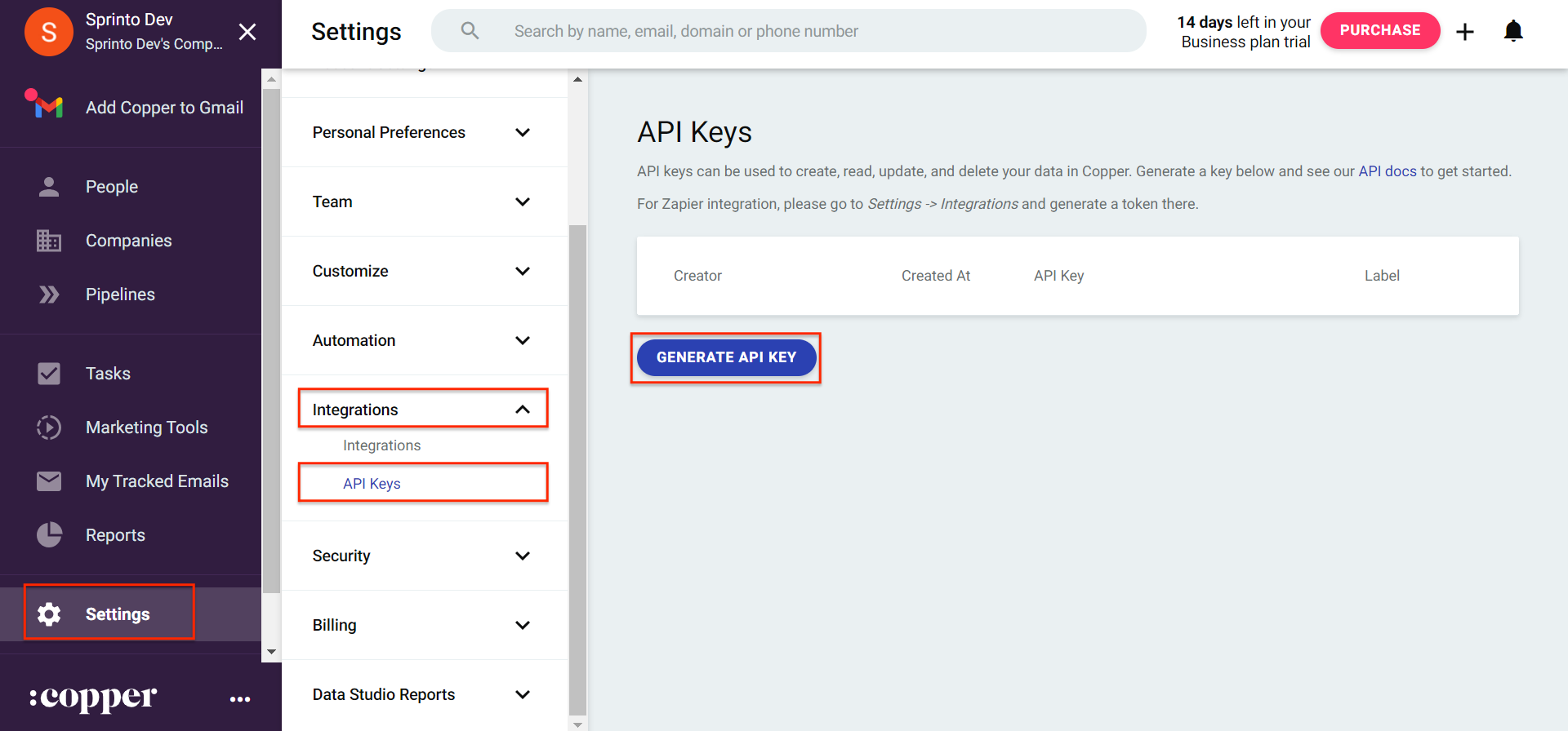 ### How to integrate Sprinto with Copper <a href="#integrating" id="integrating"></a>