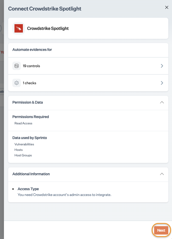 Integrate Crowdstrike Spotlight with Sprinto.