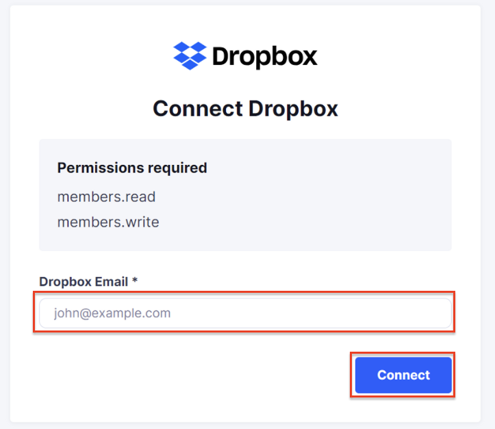 1. On **Dropbox authentication** page, enter your Dropbox email address and click **Connect**.