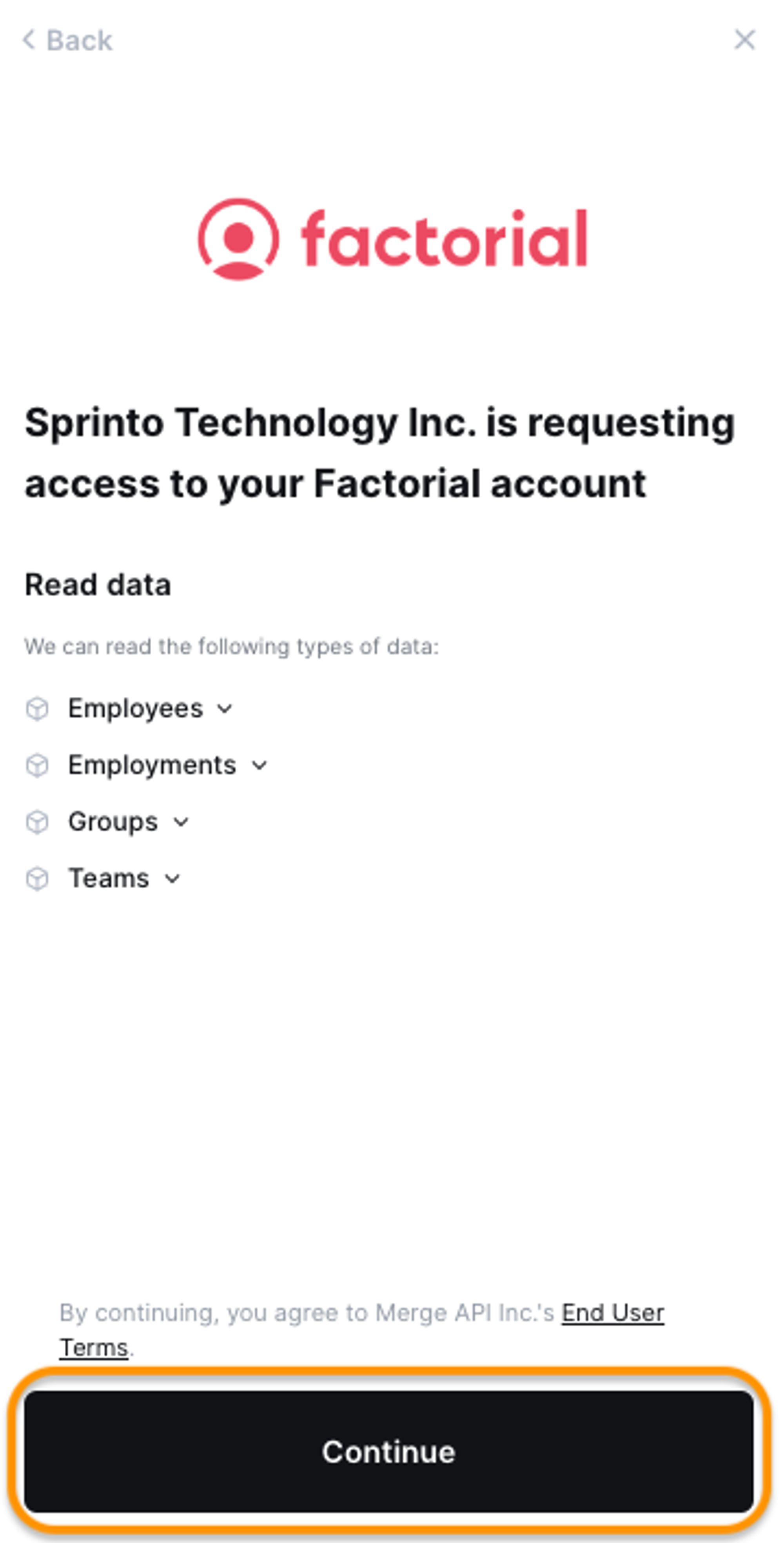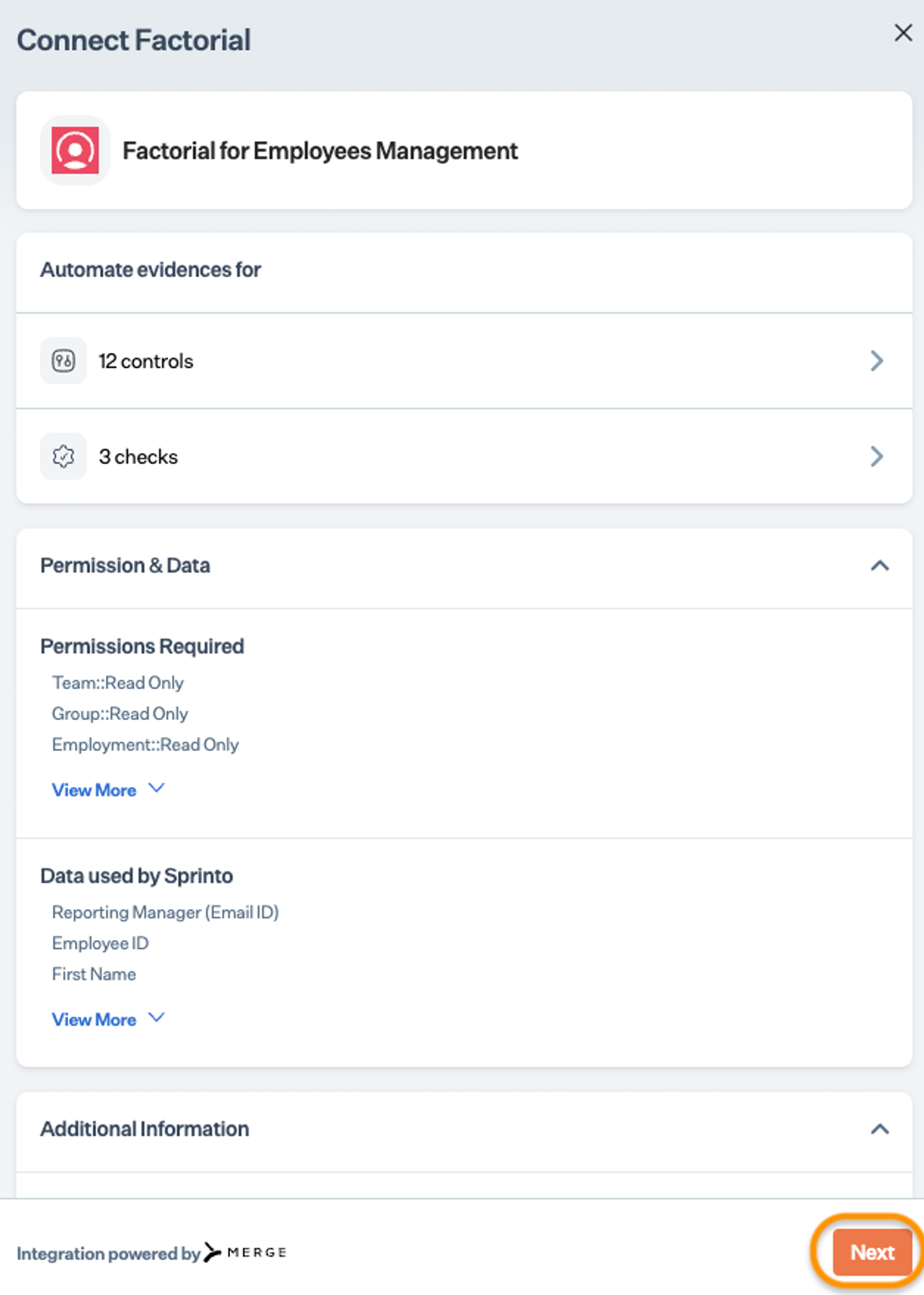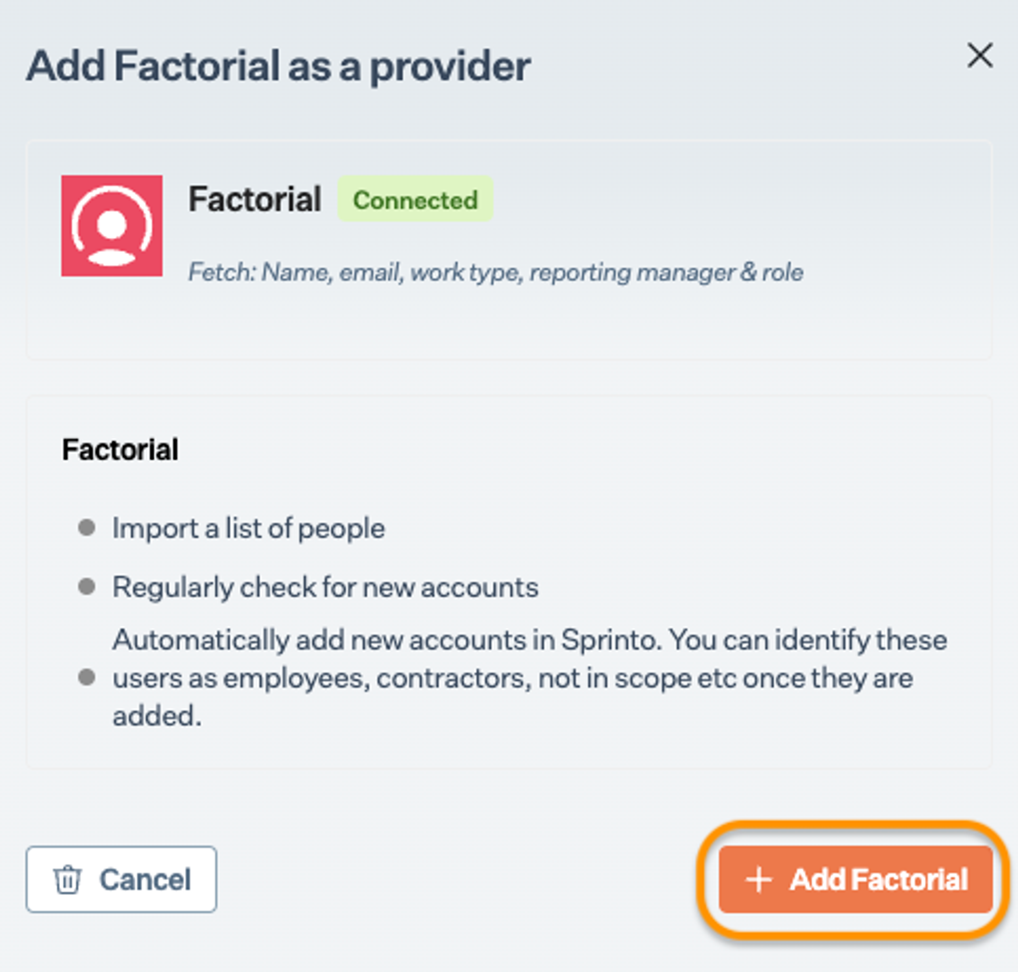 Integrate Sprinto with Factorial