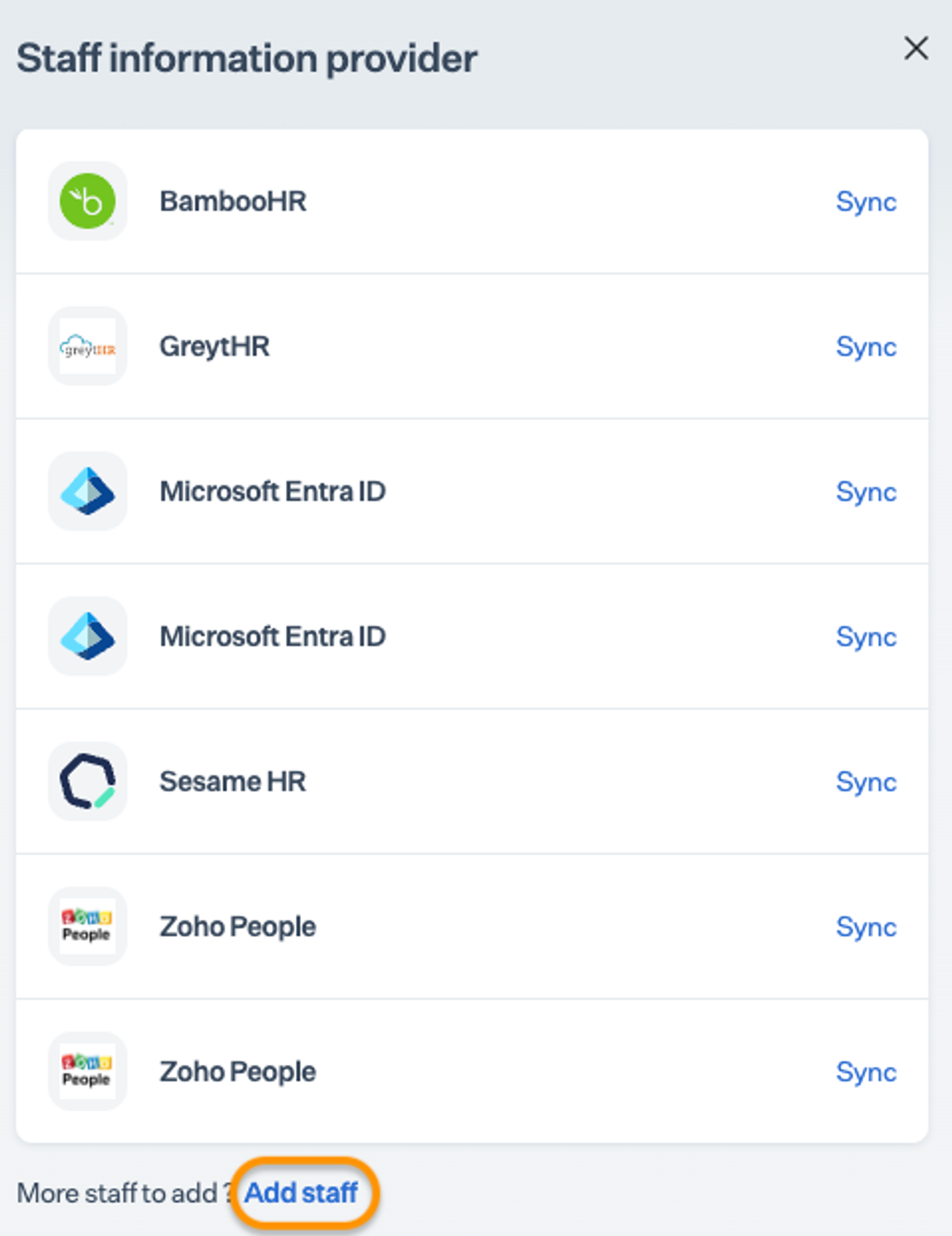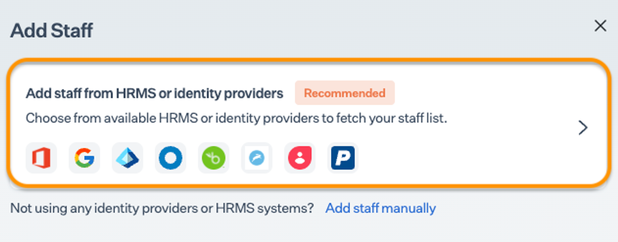 Click Add staff from HRMS or Identity Providers.
