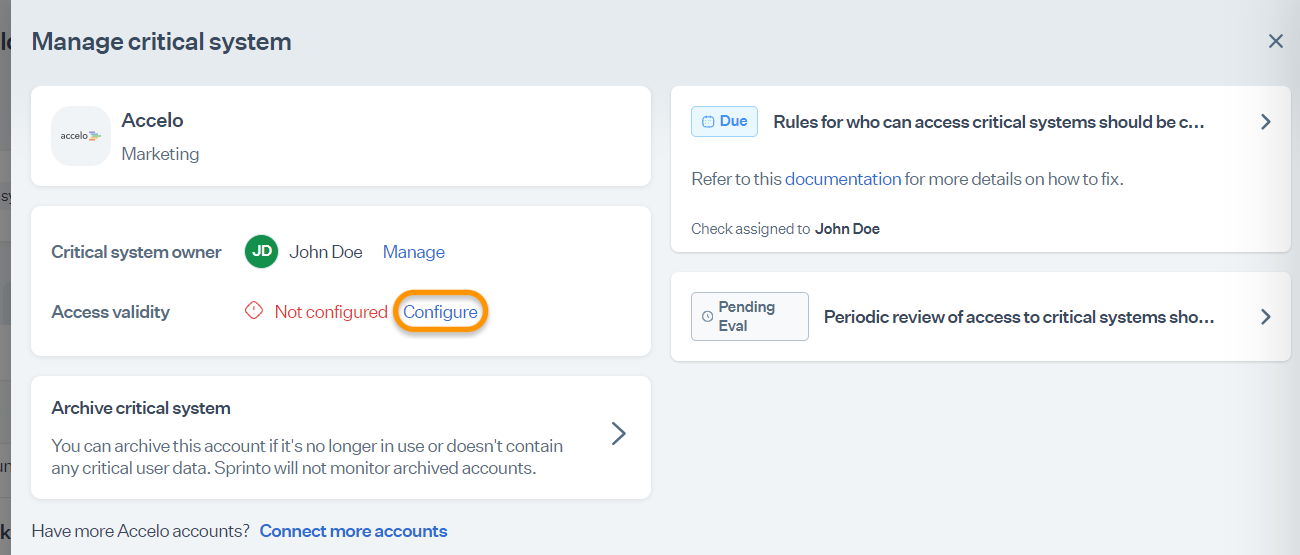 On Sprinto app, go to Data Library > Access, and click Add Critical System.