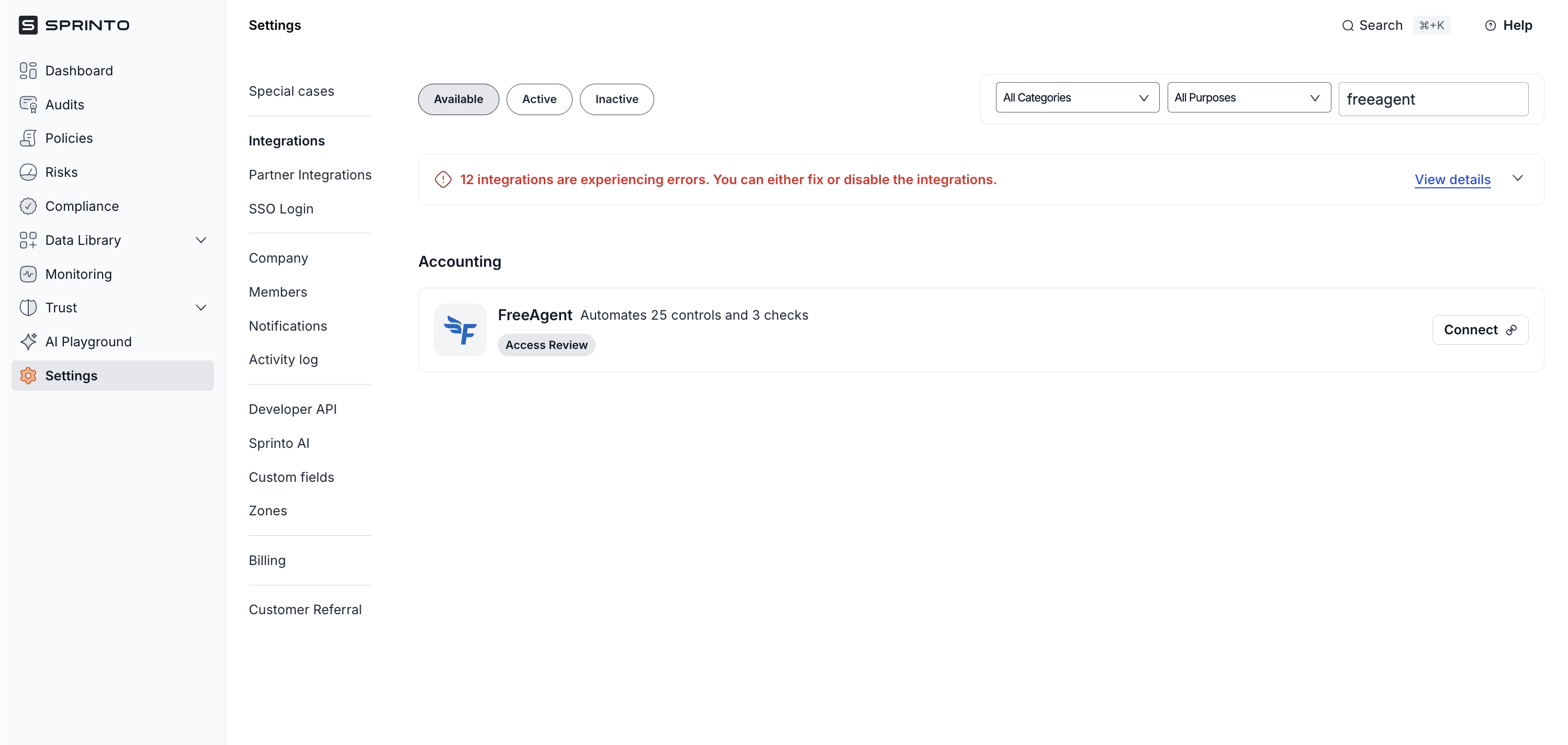 Integrate FreeAgent on Sprinto.