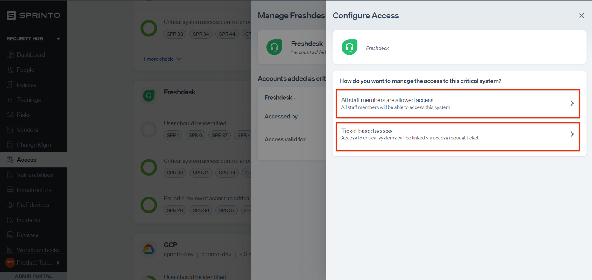 Note: Sprinto activates a check against any staff member with invalid access based on the access type selected.
