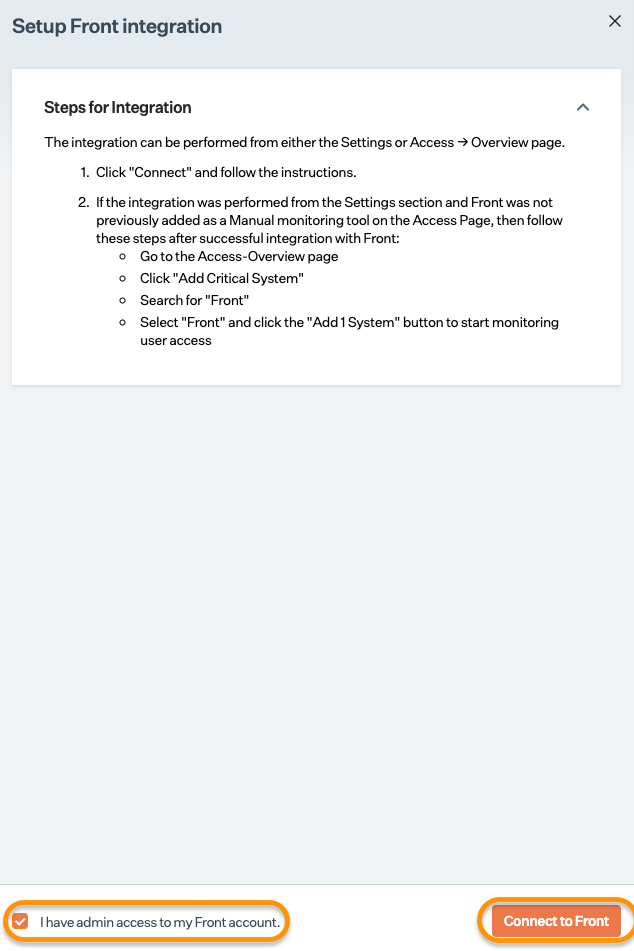 Ensure you have administrator privilege on Front to perform this integration procedure.