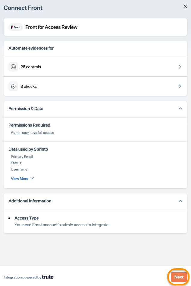 Follow the procedure below to integrate and configure Front with Sprinto:
