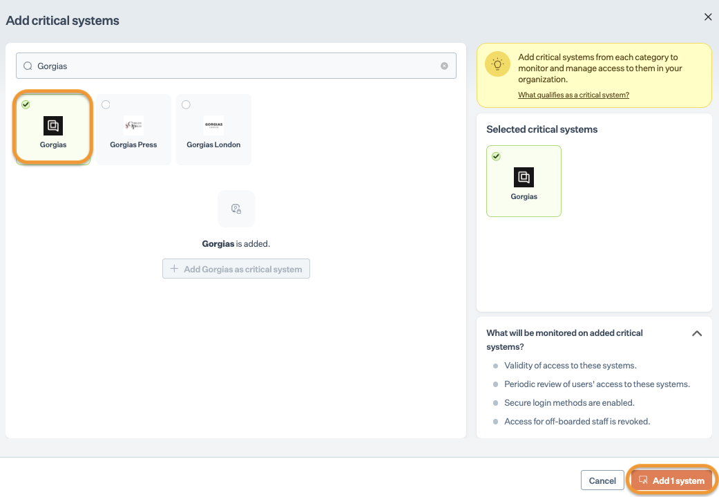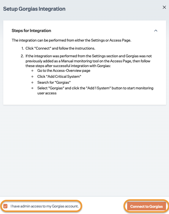 * Go to Data Library > Access > Critical systems, and select Gorgias.