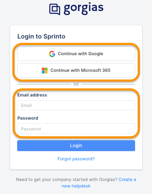 * Log in to your Gorgias account using your credentials or the available Single Sign-On (SSO) option.\