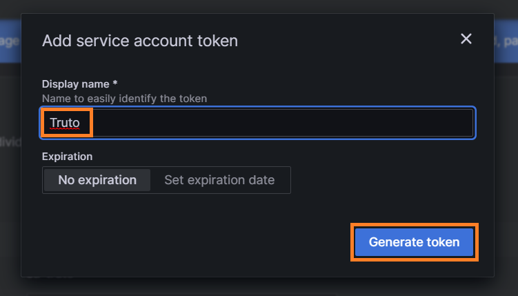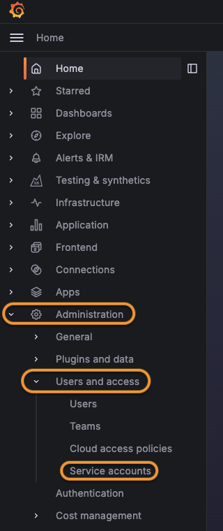 Follow Step 1 from the “Grafana as an incident management system” section to generate a new service account and token. If you have already created a service account and generated the API token from integrating Grafana for incident management, you can use the same token, or you can generate a new token under the same service account if required.