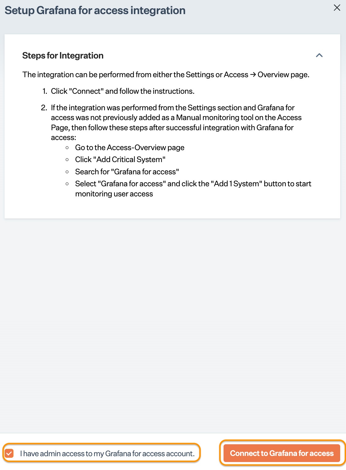 Ensure you have administrator privileges on the Grafana account you are integrating.