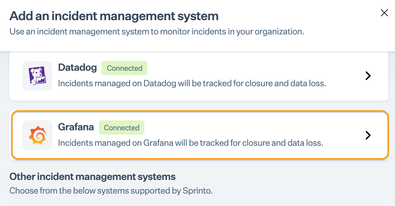 The following guide will help you to integrate and configure your Grafana account on Sprinto for incident management and user access review.