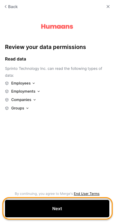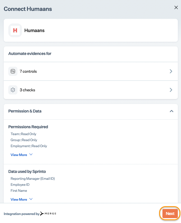 Note: Merge is our integration partner for Humaans for employee management. Sprinto utilizes Merge’s API capabilities to streamline data inflow from the Humaans account.