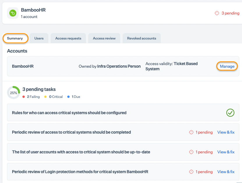 From the Sprinto admin portal, navigate to Data Library > Access, then select the Overview tab and click + Add Critical System.