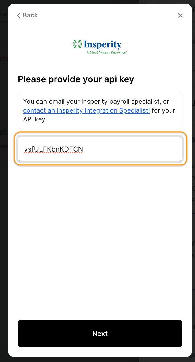 Get the API key from your Insperity Premier account.