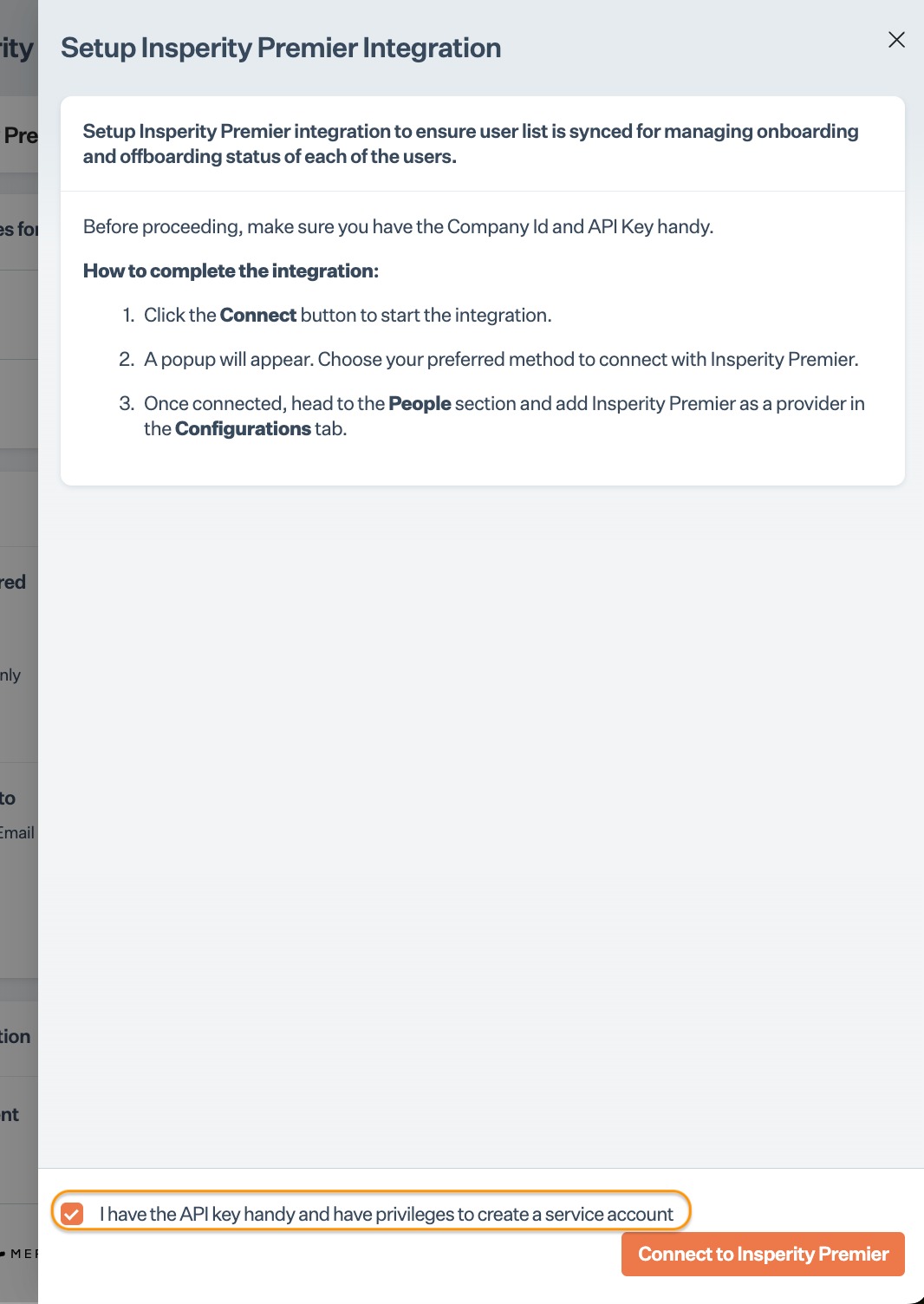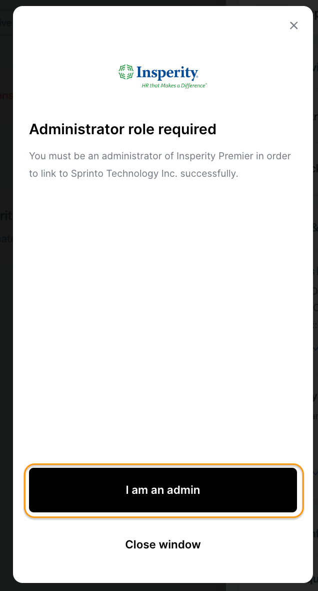 You need to have administrator privileges on the Insperity Premier account you are integrating.