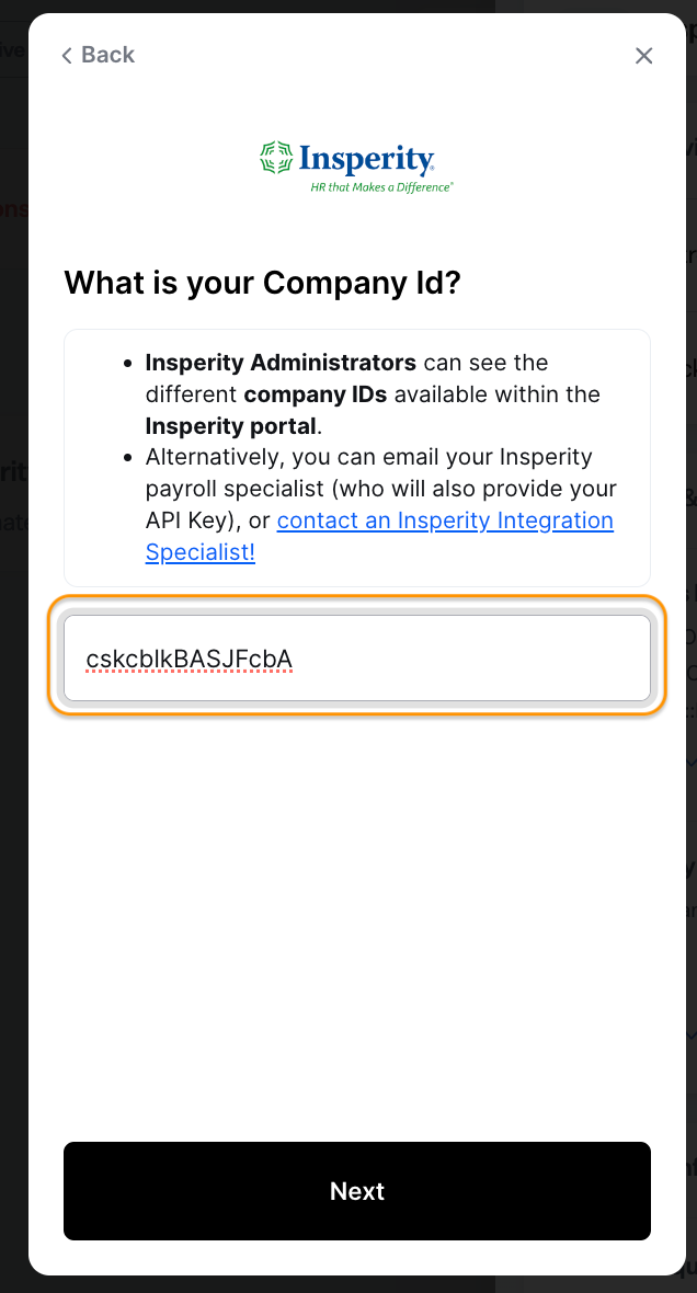 Enter the Company ID for your Insperity account, and click Next.