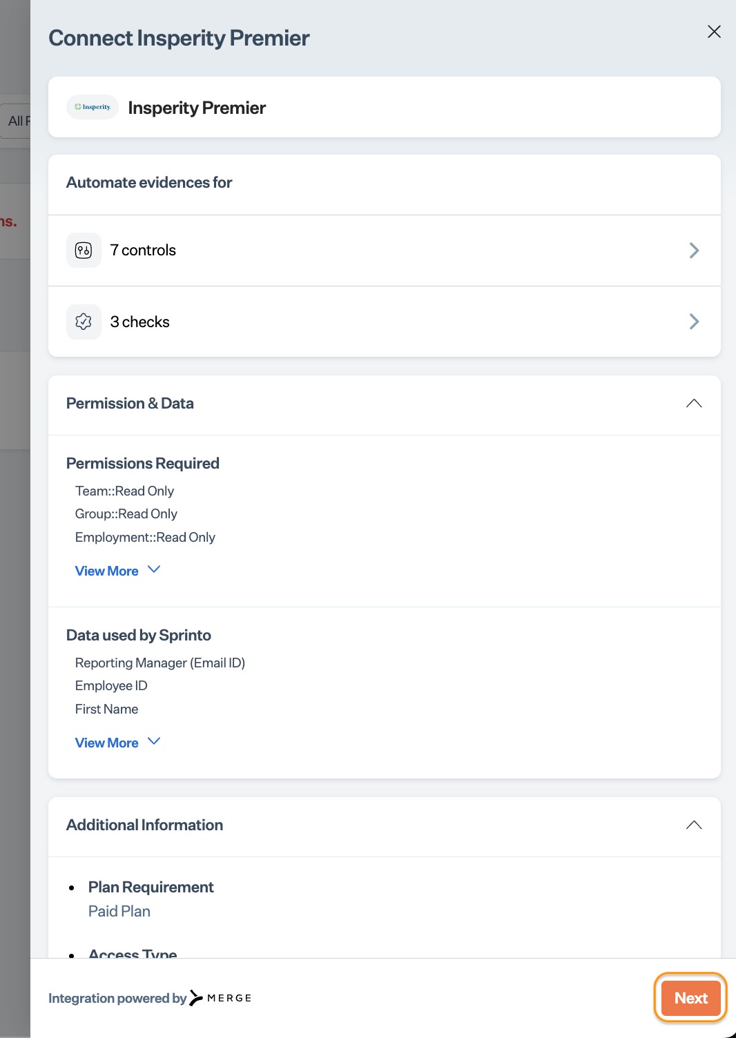 Integrate Insperity Premier with Sprinto.