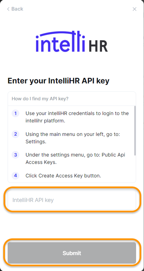 Ensure you have "Admin" access on the IntelliHR account you want to integrate.