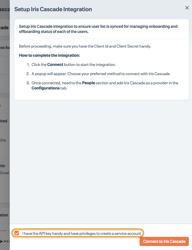 * Ensure you have a paid account on IRIS Cascade to build integration with Sprinto.