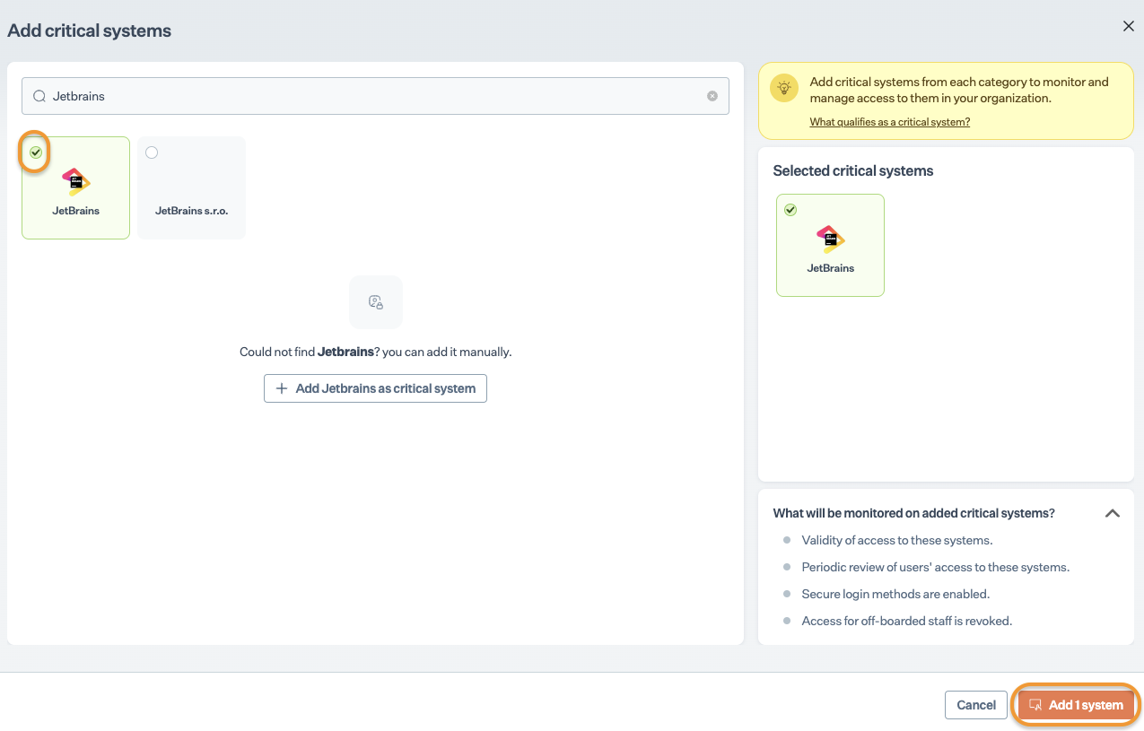 Navigate to Data Library > Access > Critical System, and select JetBrains.