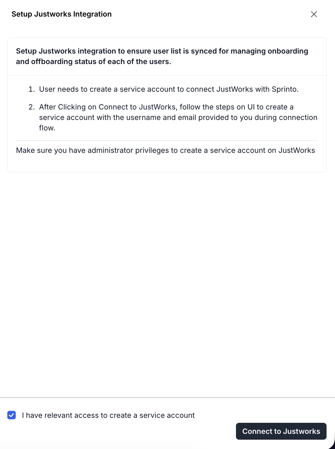 You must have a paid account on Justworks to integrate it on Sprinto.