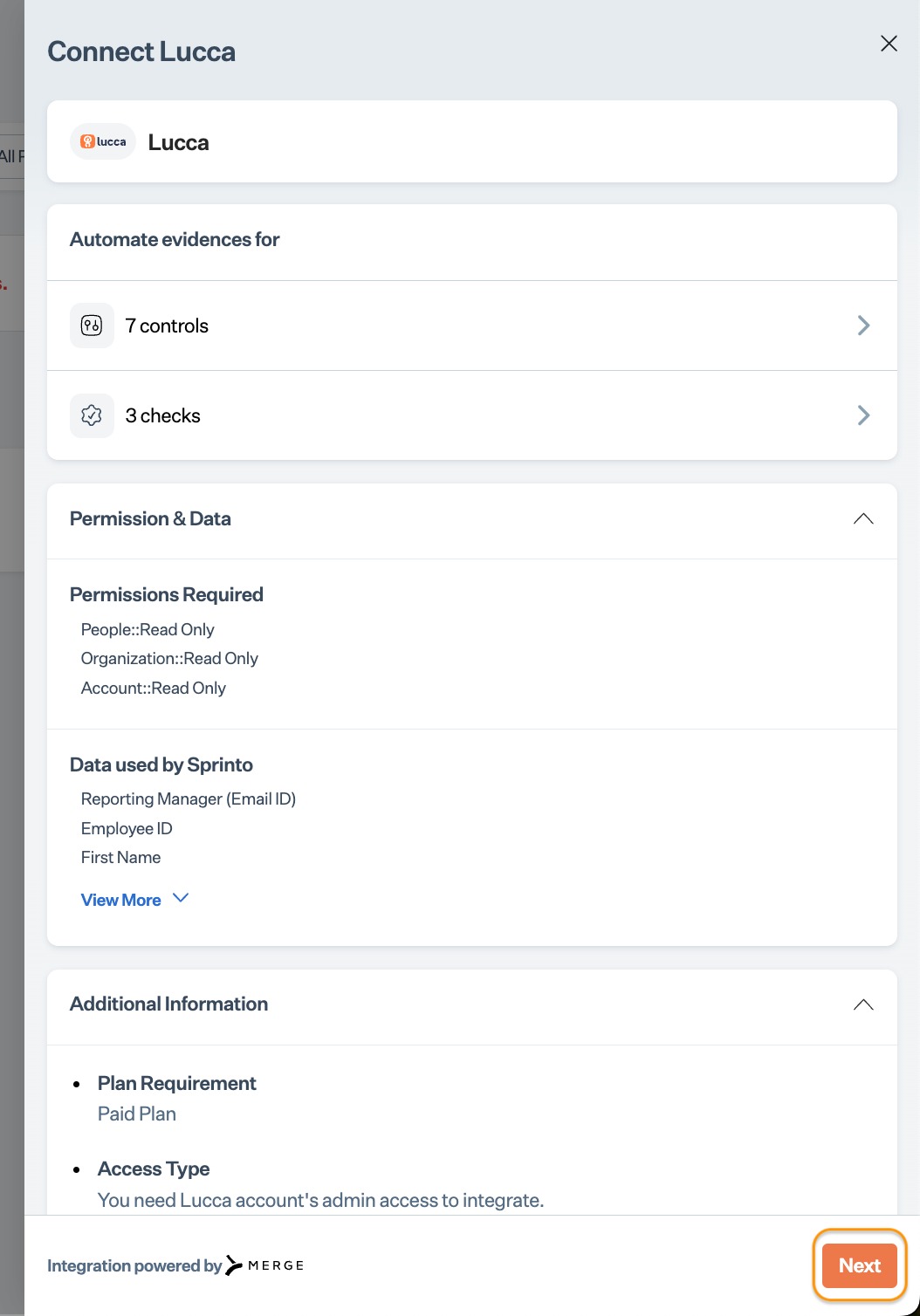* Ensure you have a paid account on Lucca to build integration with Sprinto.