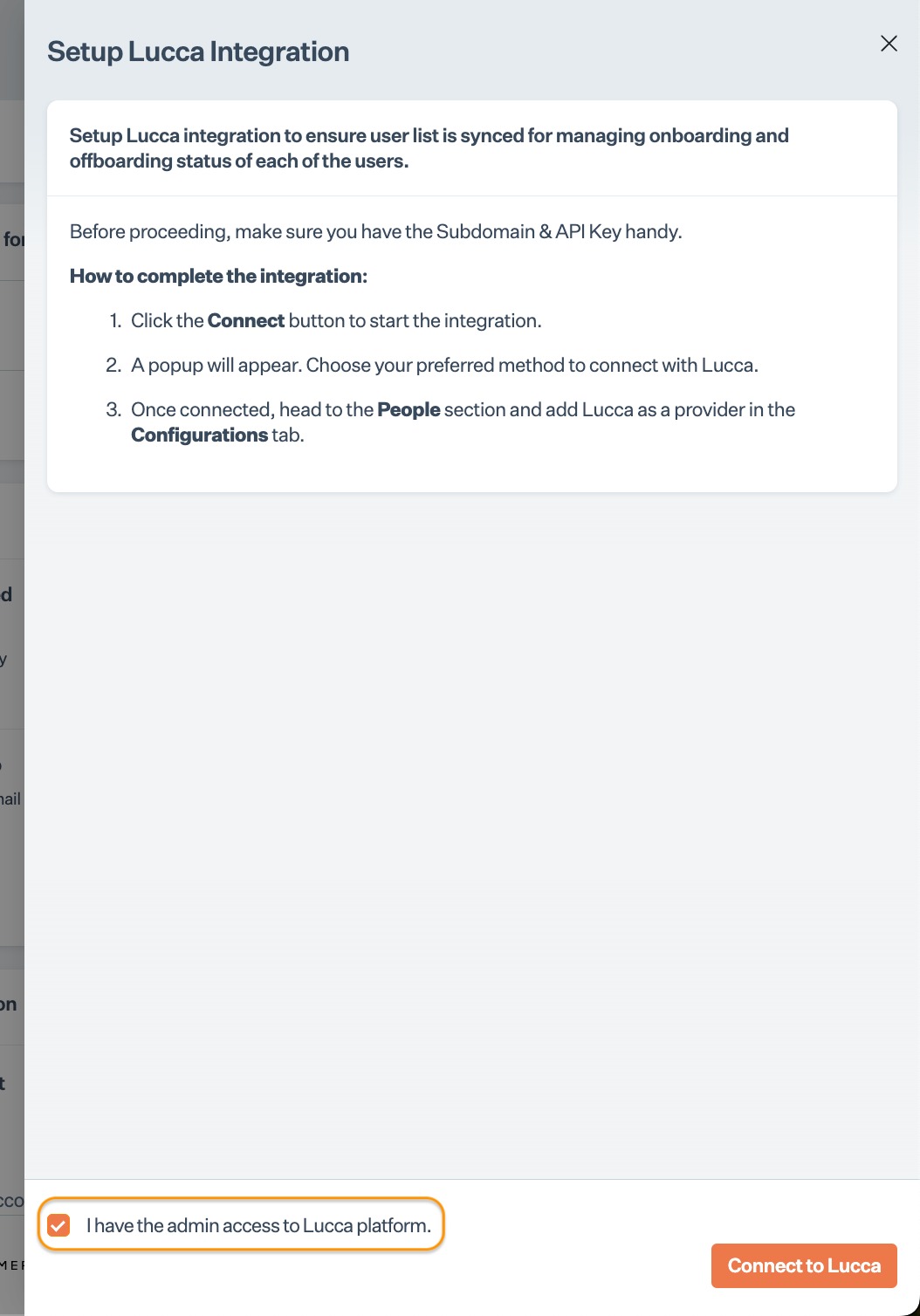 * You need to have administrator privileges on the Lucca account you are integrating.