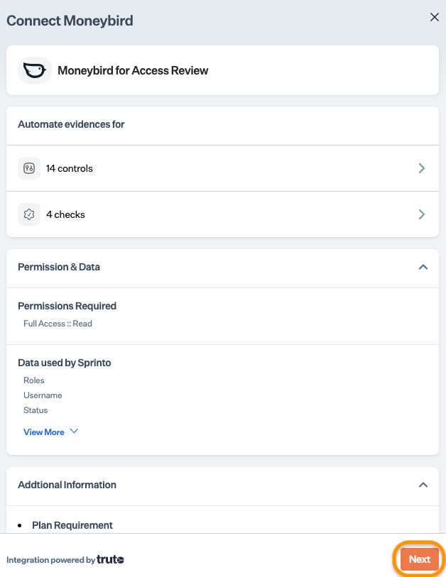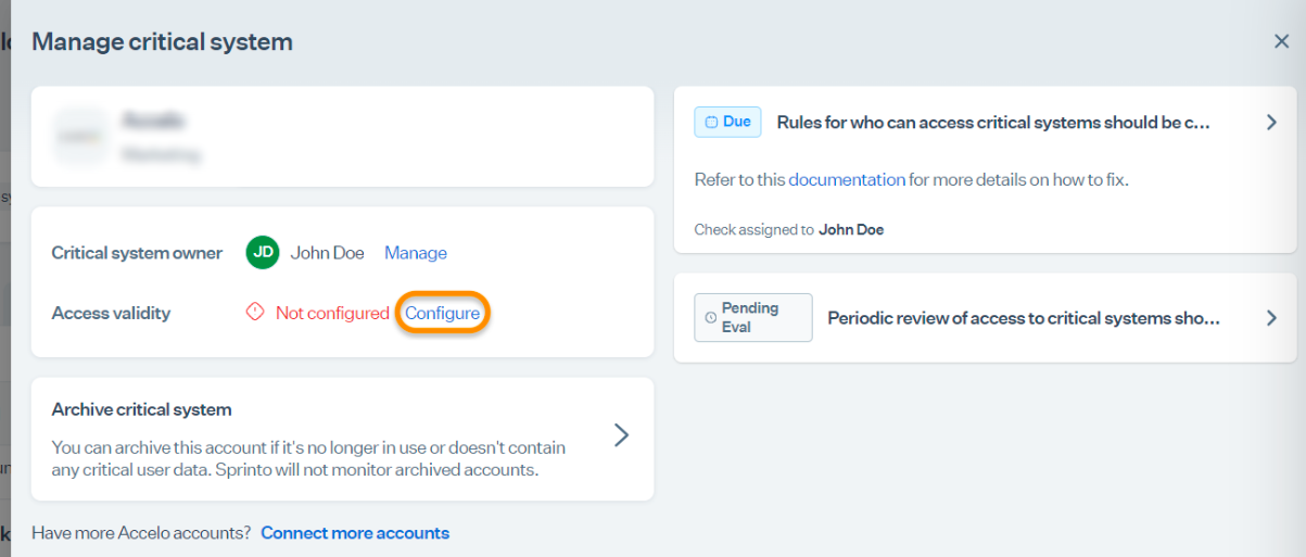 After completing Step 3, allow 15 to 20 minutes for Sprinto to finish the data syncing process. Sprinto may take a few hours to evaluate the synced data and activate relevant Sprinto checks. If needed, go to Data Library > Access > Critical System to check for pending tasks next to Moneybird.
