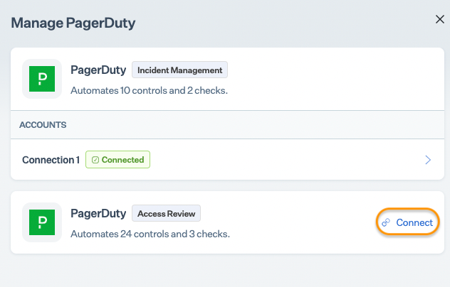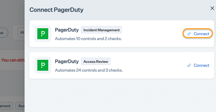 From the Sprinto admin portal, navigate to Settings > Integrations, then select the Available tab and click Connect next to PagerDuty.