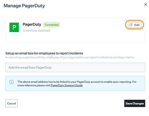 Click Edit to modify the current selected incident services from your PagerDuty account.